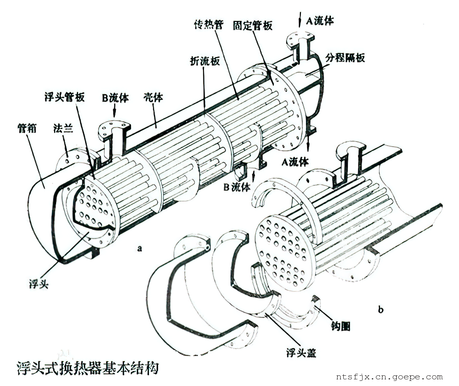 浮头式换热器两端的管板,一端不与壳体相连,该端称浮头。管子受热时,管束连同浮头可以沿轴向自由伸缩,消除了温差应力。
