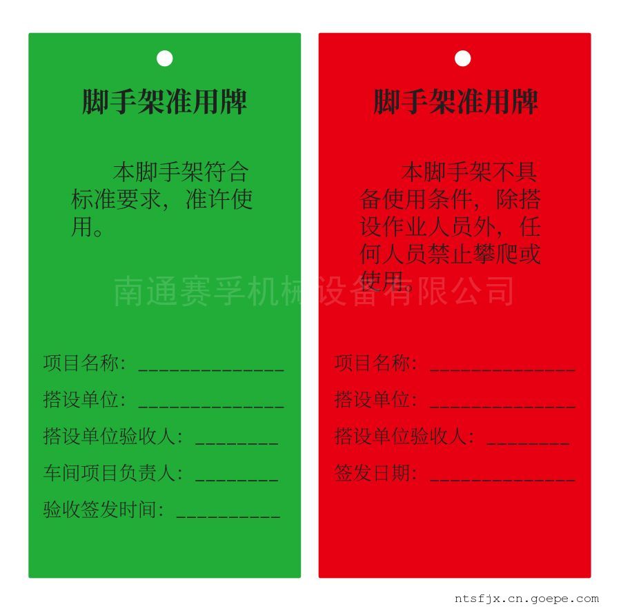 1.绿色表示脚手架已经过检查且符合设计要求,可以使用